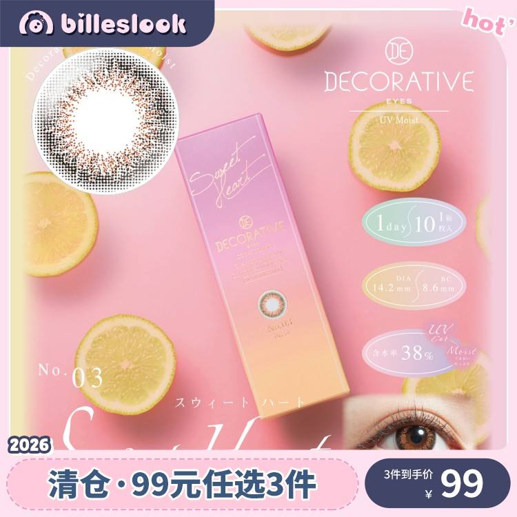 【清仓】Decorative Eyes Sweet Heart 日抛 10片装【有效期:26年5月-26年6月】