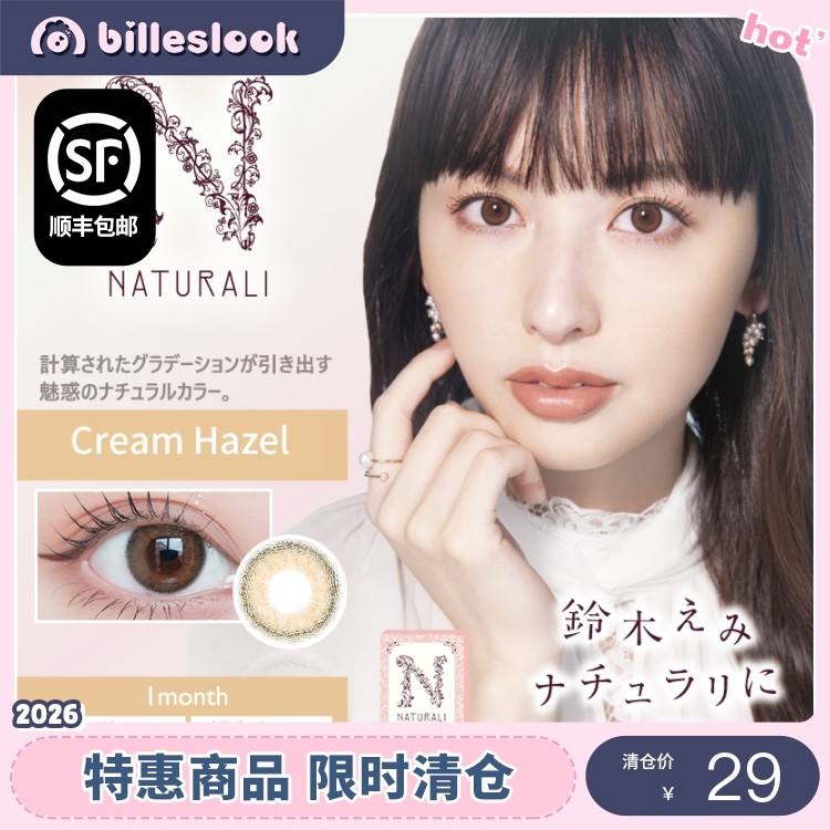 【清仓】日版原装 NATURALI Cream Hazel 新版本uv moisture系列月抛 1片装【有效期:26年7月-26年8月】